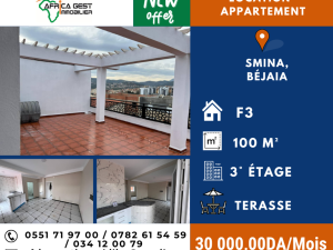 (Réf : LA/655) À louer – Appartement F3 neuf avec grande terrasse à Smina, BéjaïaAfrica Gest Immobilier vous propose en location un appartement tou...